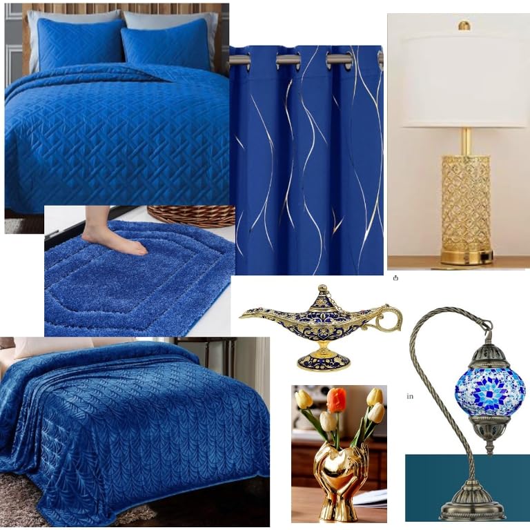 I wanted rubber non slip backing for a bedroom. And not some thin cheap so called rug. This works but I wish it came in some larger sizes. A true royal blue that looks great with the bedding and curtains. The lamp is gold as are some other things in the room. Looks lovely. I'm including the vision board I helped my daughter make. She loves it. Her furniture is dark brown. Looks rich.